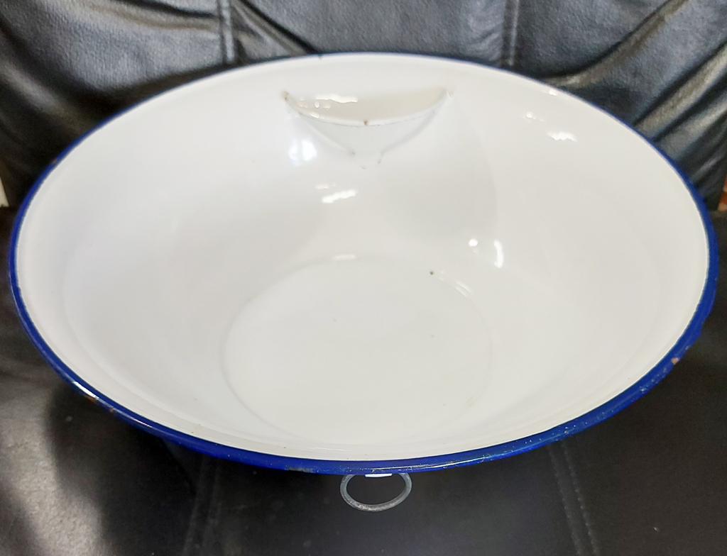<li>Emaille alt weiß mit bleuem Rand</li>