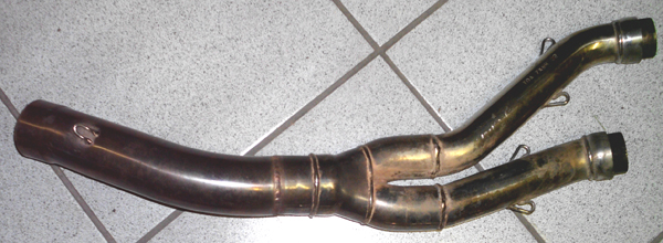 Gebrauchtes Edelstahlverbindungsrohr für Kawasaki ZX9R aus Edelstahl für Shark Doppelauspufftöpfe (Shark Track Töpfe).